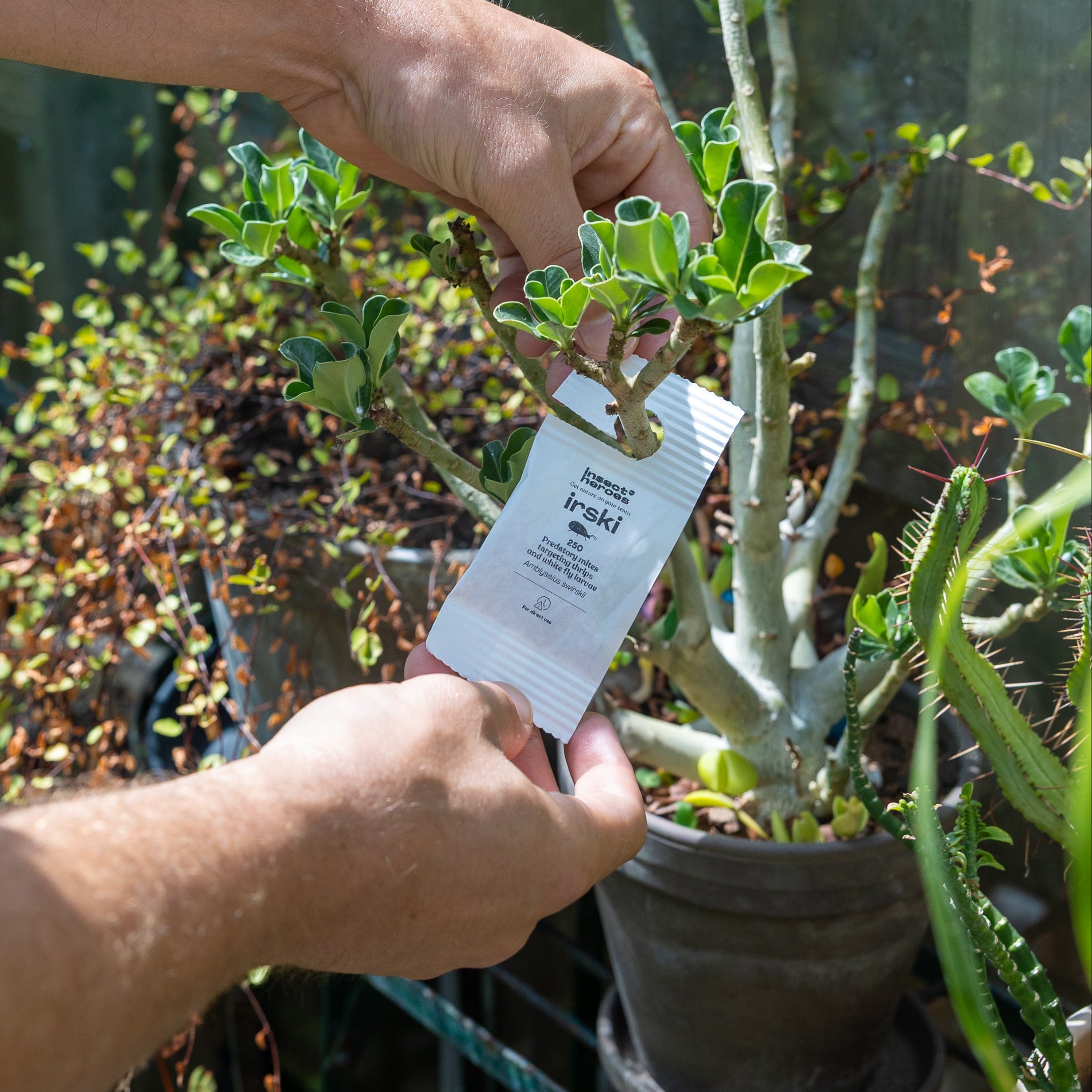 Der Combi-Deal enthält fünf Irski-Beutel, fünf Mosi-Kärtchen und zehn Sticky-Leaf-Klebefallen – ausreichend für bis zu 15 Pflanzen oder 15 m² Gemüsebeet bzw. Gewächshaus.